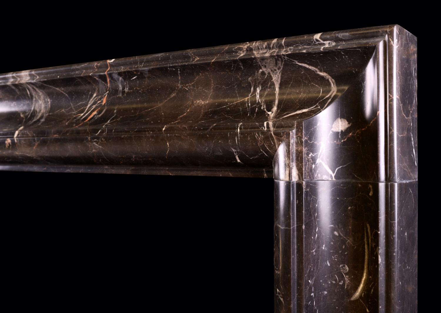 An stylish English bolection moulded fireplace in Dark Emperador marble. A good quality copy of an original piece. N.B. May be subject to an extended lead time, please enquire for more information.
