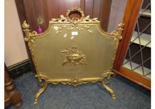 An attractive English wrought iron firescreen. The frame and legs with scrolling throughout. 20th century. (Mesh could be applied for a small additional cost.)