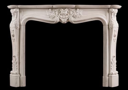 An English white marble fireplace. The frieze and jambs with carved guilloche pattern throughout, surmounted by moulded shelf with carved dentils. English, based on a late Georgian design. Modern. N.B. May be subject to an extended lead time, please enquire for more information.