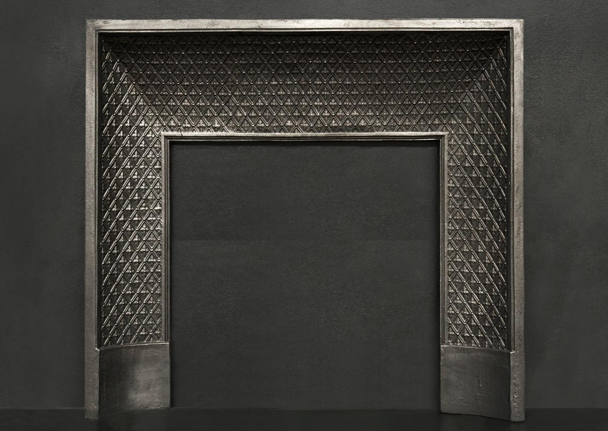 A decorative cast iron contracoeure insert with diamonds motif paterae throughout. French, early 20th century. Internal dimensions: Width - 640mm, Height - 645mm.