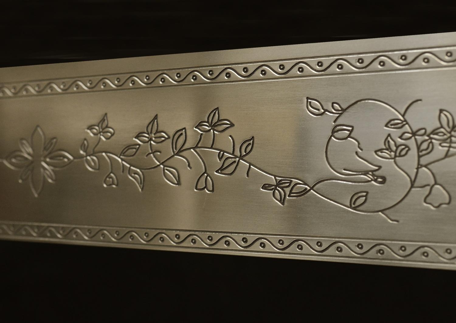 A quality copy of an 18th century Irish brass register grate. The frame with fine quality engraving throughout, the fretwork delicately pierced with urns and foliage. Brass finials and corner paterae, steel front bars. N.B. May be subject to an extended lead time, please enquire for more information. Please note the overall sizes assume 20mm of flat border between the engraving and the edge of the frame, in reality we oversize the frames so the overall size can be anything up to W1035 x H974.